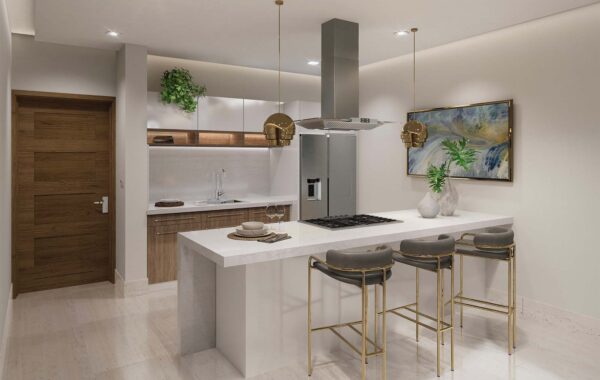 Each block has four levels of 1 and 2 bedroom apartments, which are characterized by their contact with the exterior, natural lighting and cross ventilation, in addition to successful interior layout and spacious balconies with privileged views of the common area and the beautiful landscape that has the area of Las Canas, Cap Cana.