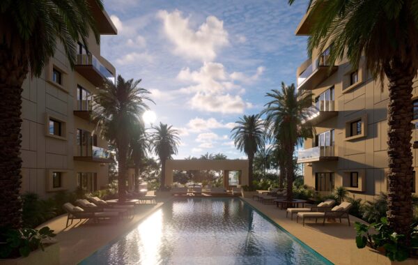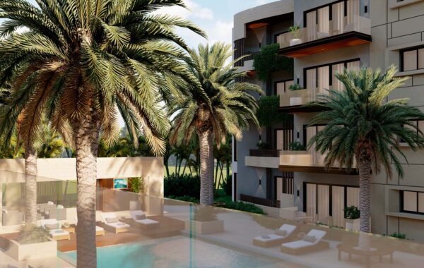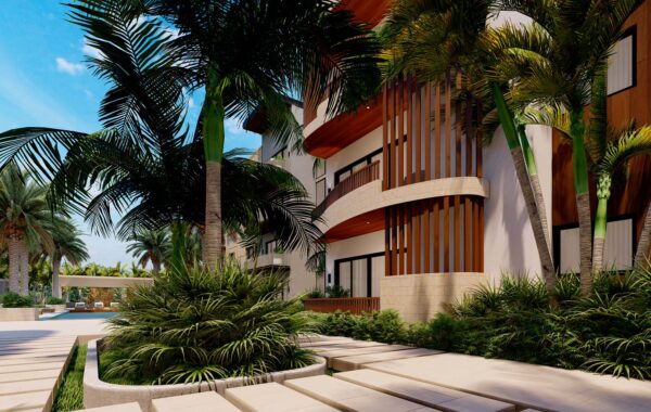 a residential development composed of 1 and 2-bedroom apartment buildings, as well as a wide range of ample proposal of amenities combining recreational areas, BBQ, gazebo(s), children’s area, swimming pool for children and adults, gym, dog park and lounge area. It is located in the residential development project Las Canas, Cap Cana. It has a Northeast front of approximately 87.79 linear meters facing the access road.