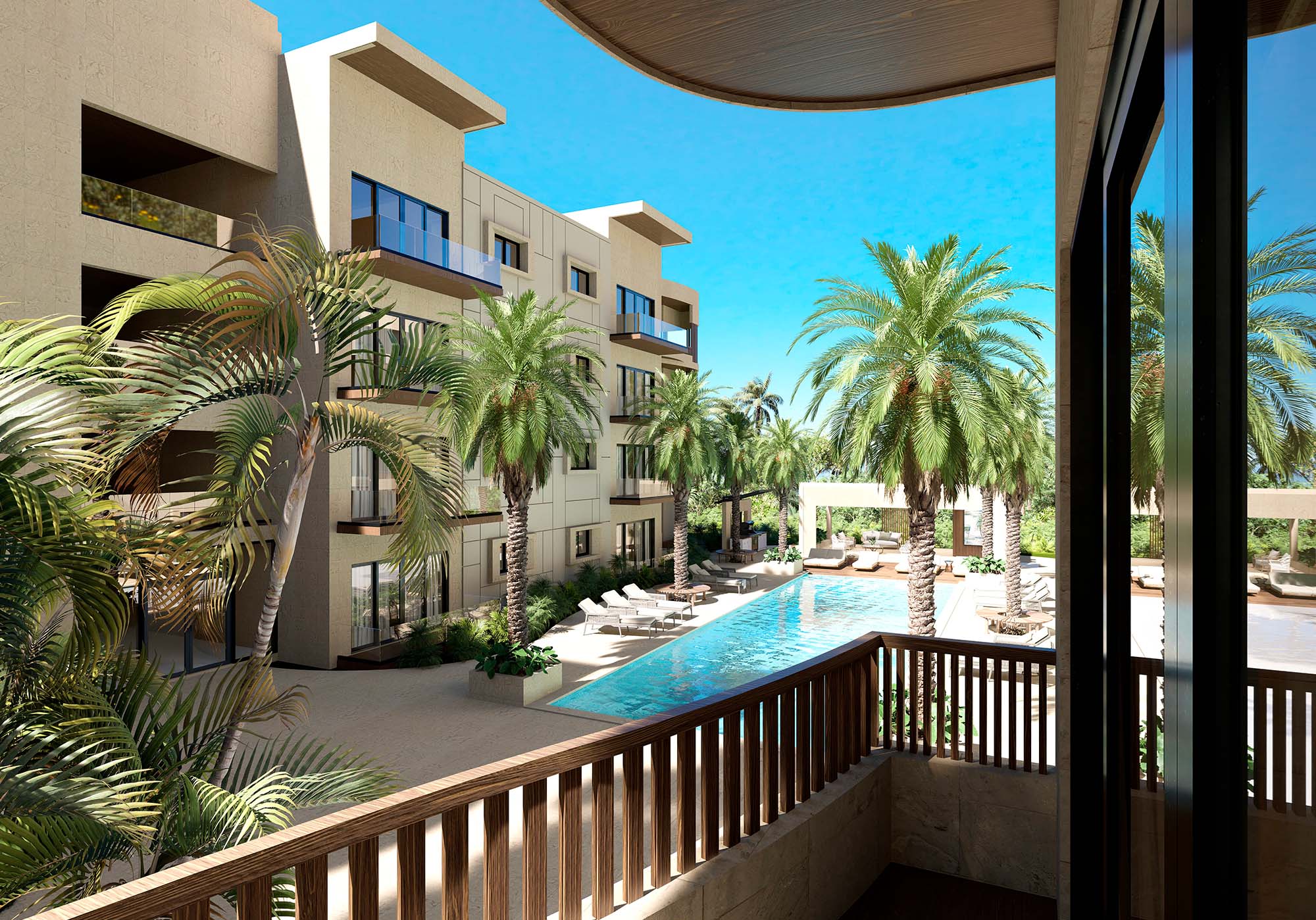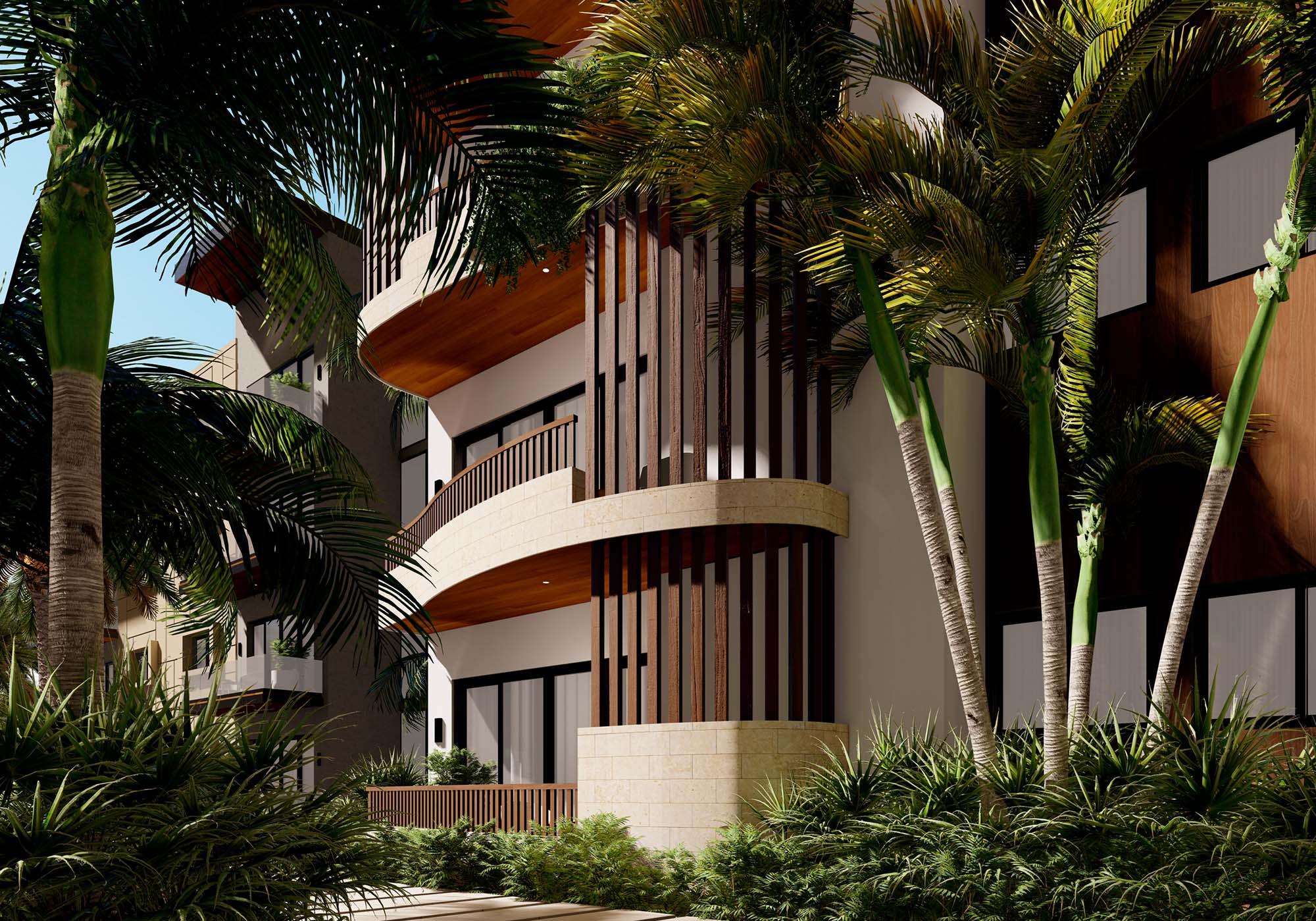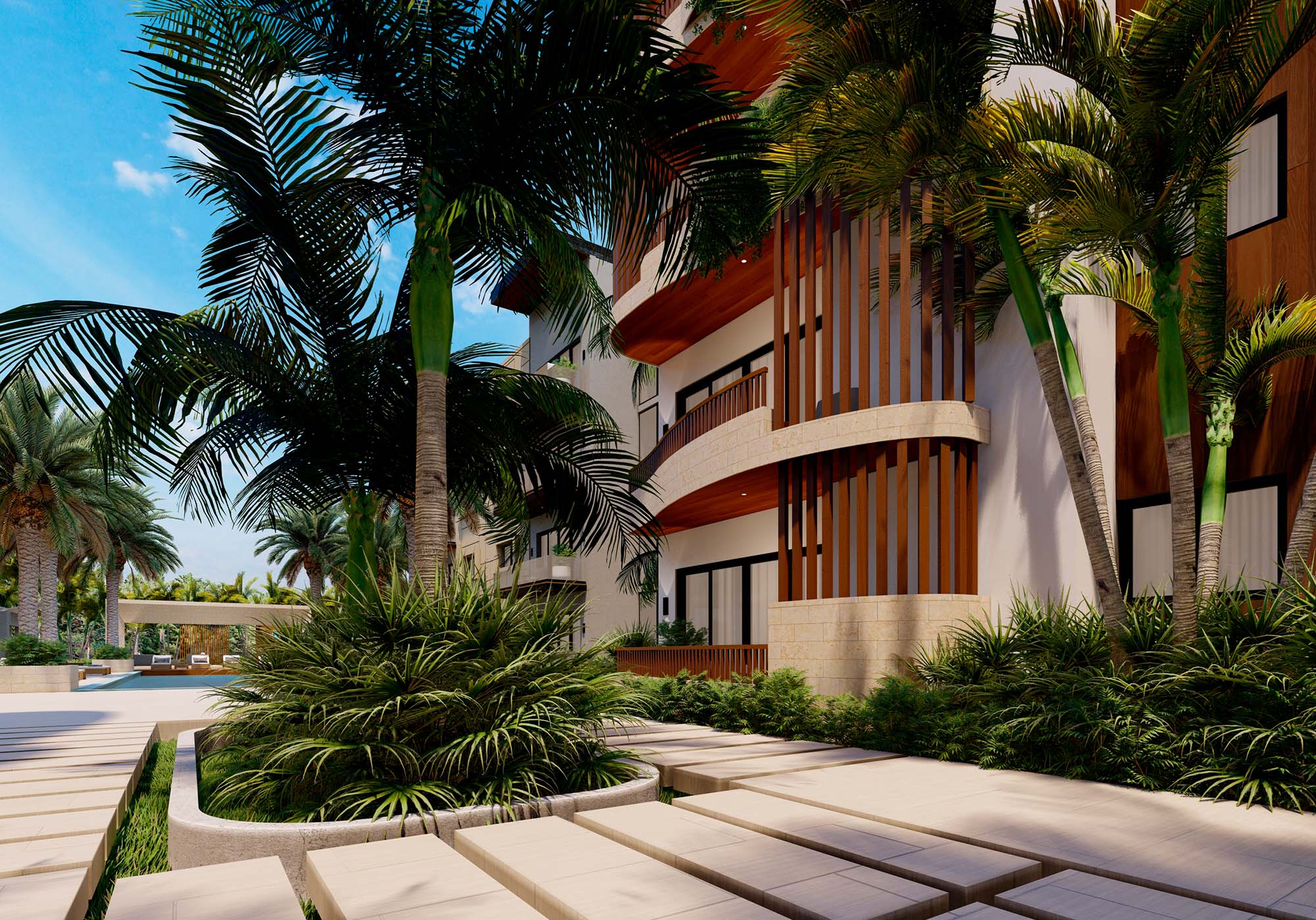 Each block has four levels of 1 and 2 bedroom apartments, which are characterized by their contact with the exterior, natural lighting and cross ventilation, in addition to successful interior layout and spacious balconies with privileged views of the common area and the beautiful landscape that has the area of Las Canas, Cap Cana.