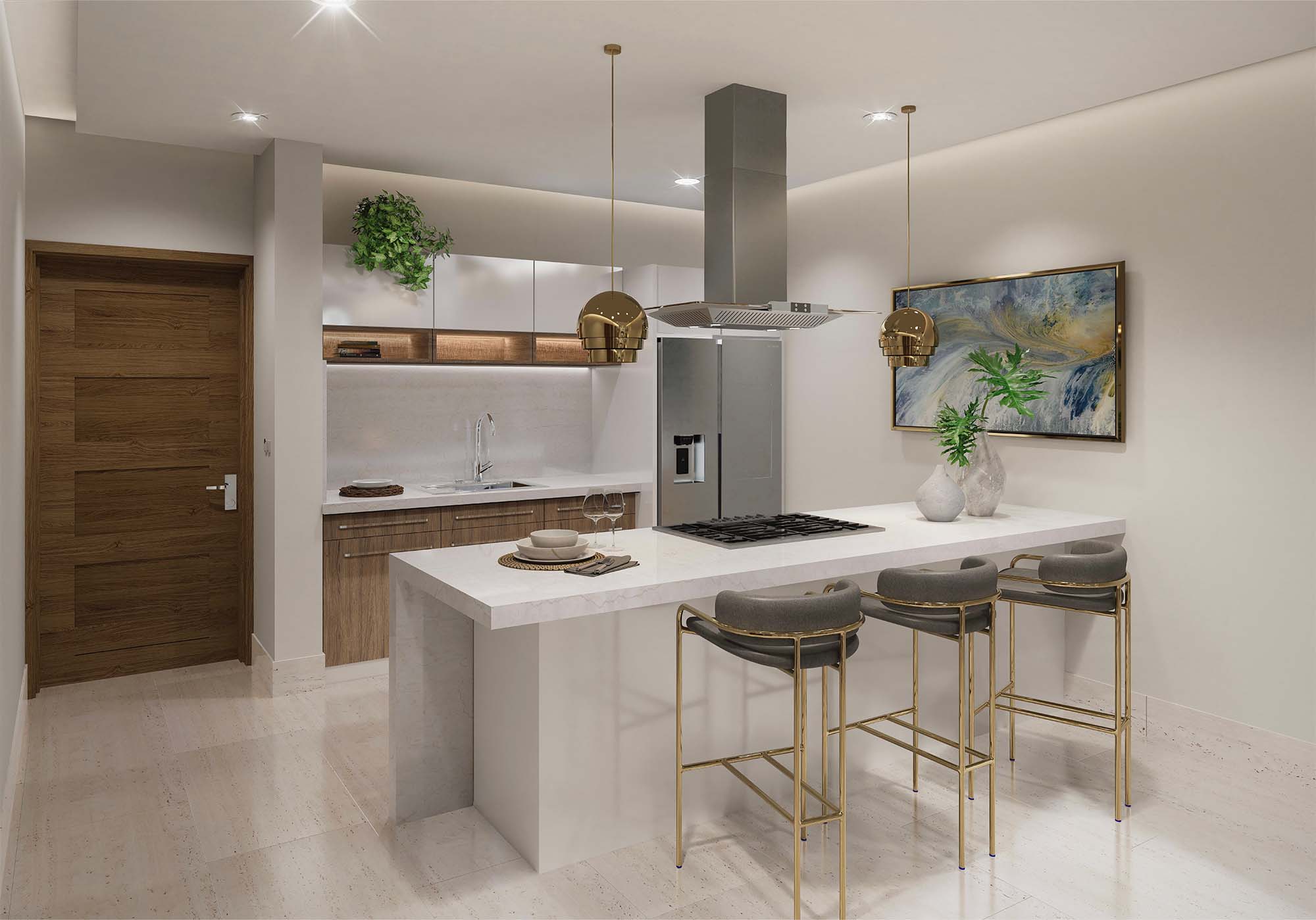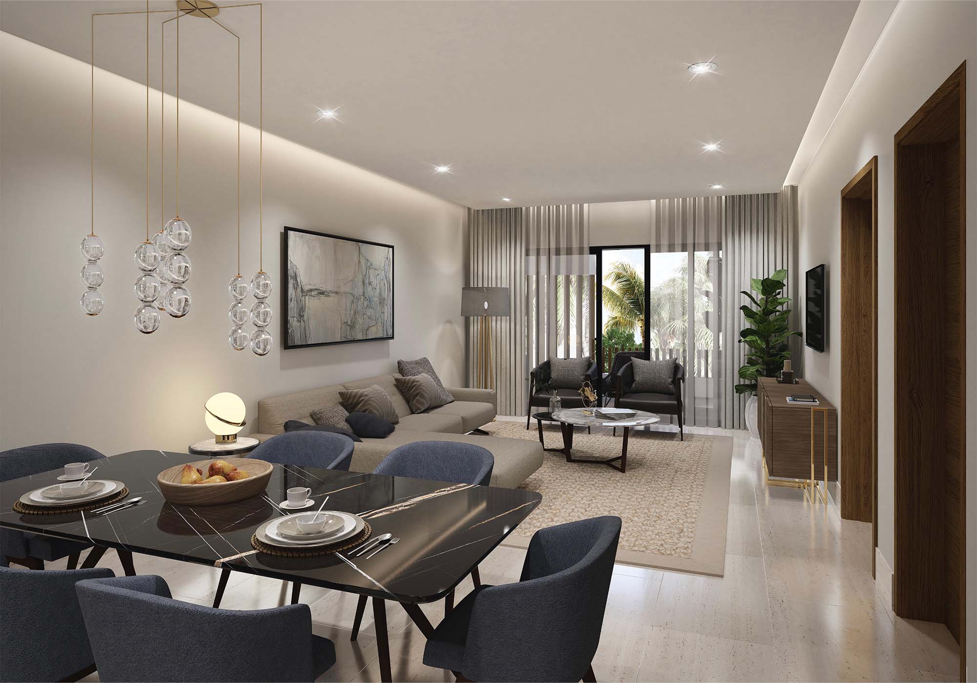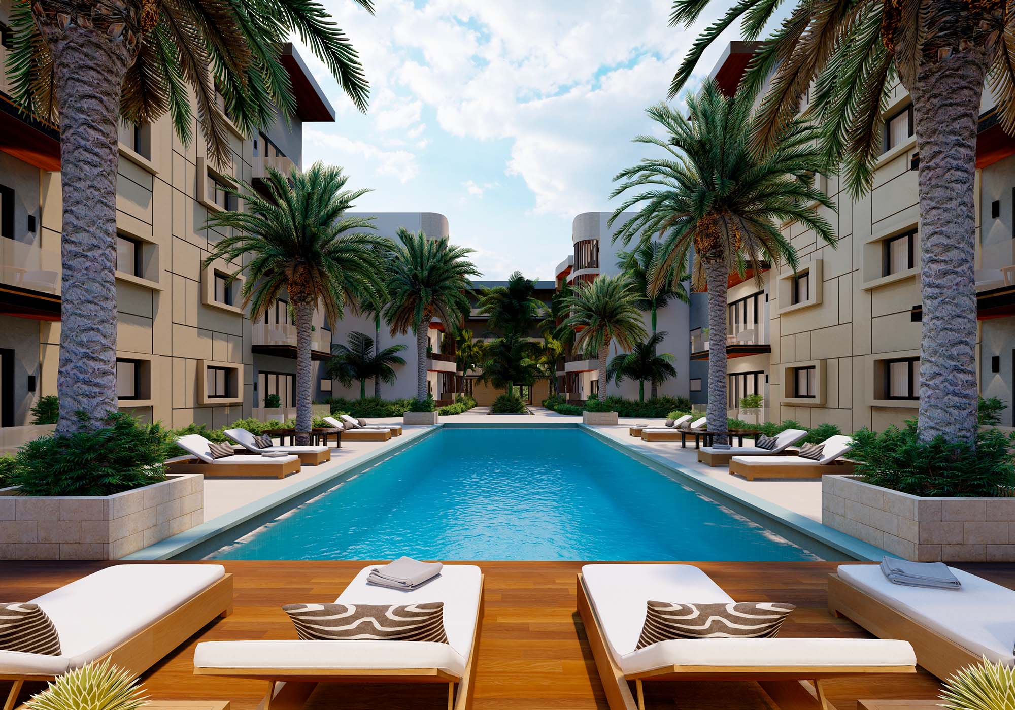 Each block has four levels of 1 and 2 bedroom apartments, which are characterized by their contact with the exterior, natural lighting and cross ventilation, in addition to successful interior layout and spacious balconies with privileged views of the common area and the beautiful landscape that has the area of Las Canas, Cap Cana.
